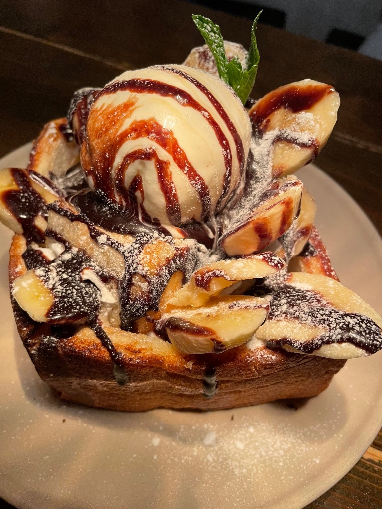 初めて行った居酒屋でここのチョコバナナパンケーキが美味しすぎて🥞🤤